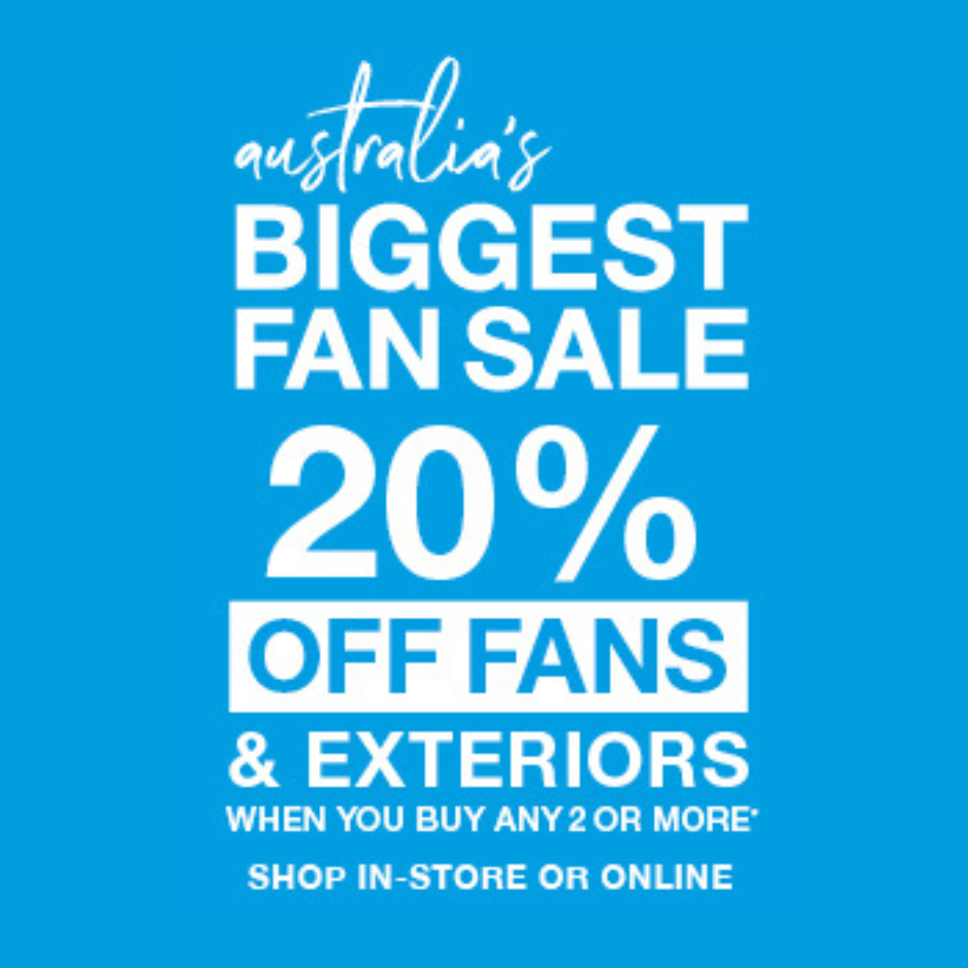 Shop at Beacon Lighting during Australia’s Biggest Fan Sale for 20% off fans and exteriors when you buy two or more items.